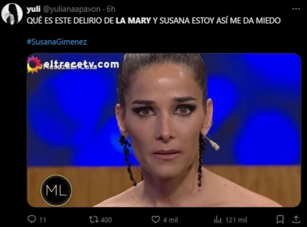 En un hecho insólito para la televisión, Susana Giménez habló consigo misma en la última emisión de su programa de Telefe. Más precisamente, Susana entrevistó a La Mary, el personaje que interpretó en 1974, gracias a la "magia" de la IA. La charla fue tan lograda que generó impacto en los televidentes y, claro, una ola de memes.