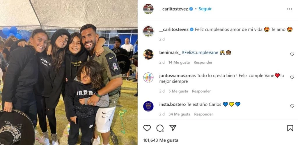 “Sorprendiendo siempre”, expresó Carlos Tevez en sus redes al compartir lo que hizo para el cumpleaños de Vanesa Mansilla, su compañera de vida desde hace casi 25 años, la mamá de sus hijos Florencia, Katie y Lito Jr.