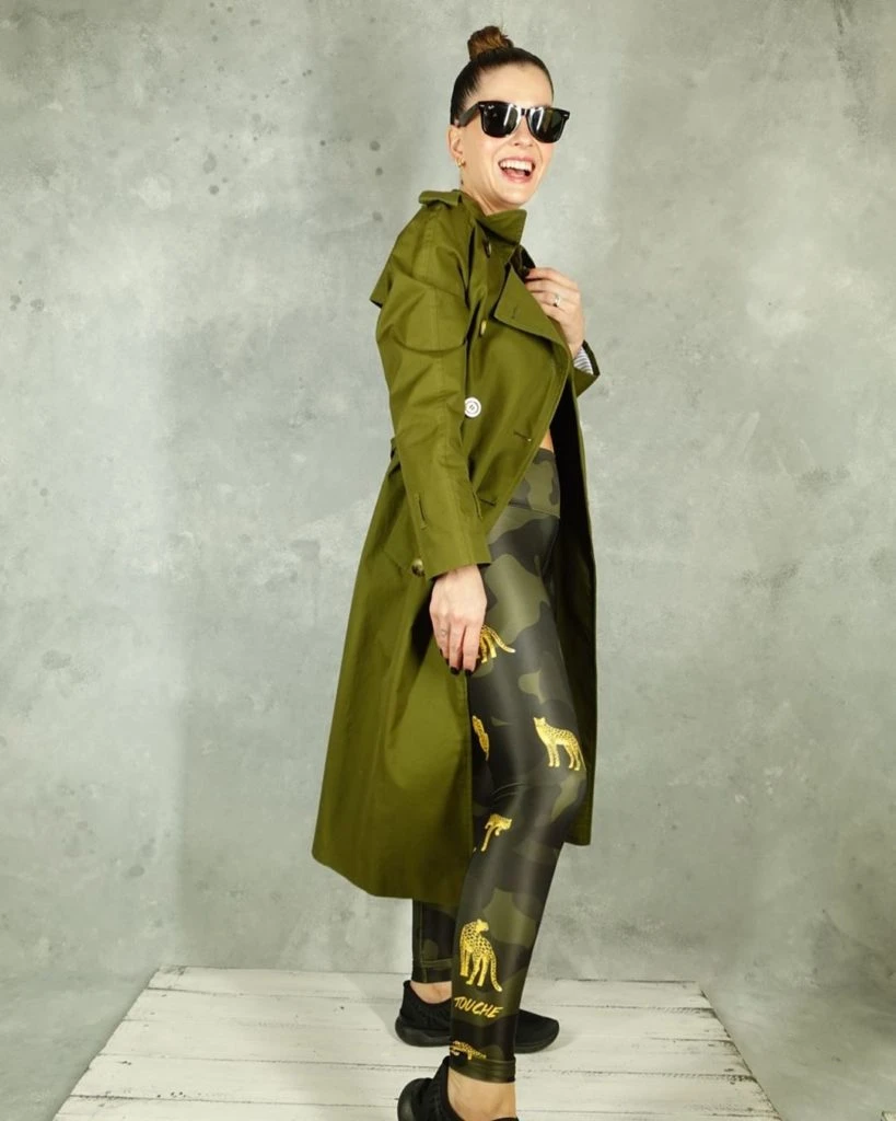 “Ya les puedo contar. Bienvenidas a mi colección. Ahora si tengo ganas de entrenar”, escribió la actriz en una de las fotos en donde luce un conjunto de top y calza estampados de color verde agua con print de flores rosas.