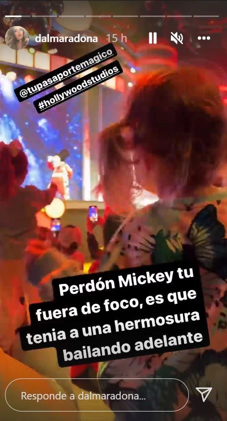"Perdón, Mickey, tu fuera de foco, es que tenía una hermosura bailando adelante", se disculpó. Luego, la joven comentó a los usuarios cómo se manejan en los parques con los protocolos preventivos por el Covid-19, sobre todo en lo que hace a los nenes chiquitos, no tan fáciles de controlar cuando se encuentran con sus ídolos.