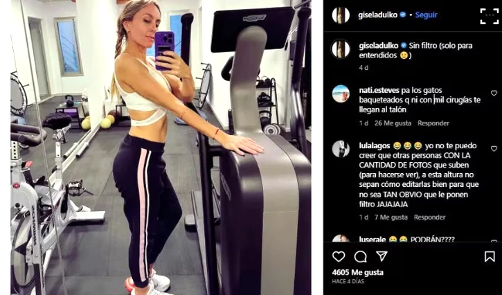 Debido a que muchos comentarios hacían alusión a “la otra”, por Laffitte, se descubrió a qué se debía esa sutil e incipiente indirecta de Gisela. Así como hace un tiempo utilizó sus redes para mostrarse tras su separación, cientos de internautas consideraron que se burló de la novia actual de Gago.