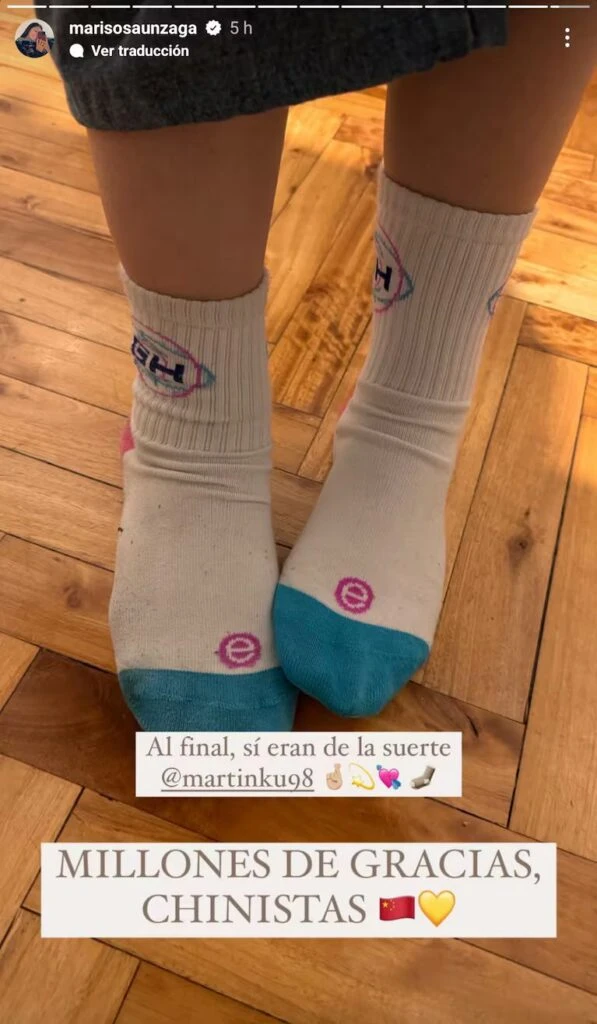 Tras la victoria de Martín, quien consiguió ganarle el mano a mano a Juliana por 36,7% contra 62,4% de la doble de riesgo, la pareja del gran ganador de la gala del martes 18 de junio compartió la foto de esa prenda que considera le trajo suerte y escribió: “Al final, sí eran de la suerte. Millones de gracias, chinistas”.
