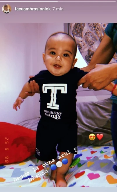 Hace unas horas, el cordobés publicó en su cuenta de Instagram una foto del pequeño con la camiseta de Talleres y la descripción: “Desde la cuna, azul y blanco” De esta manera desafió a su suegro, Jorge Rial