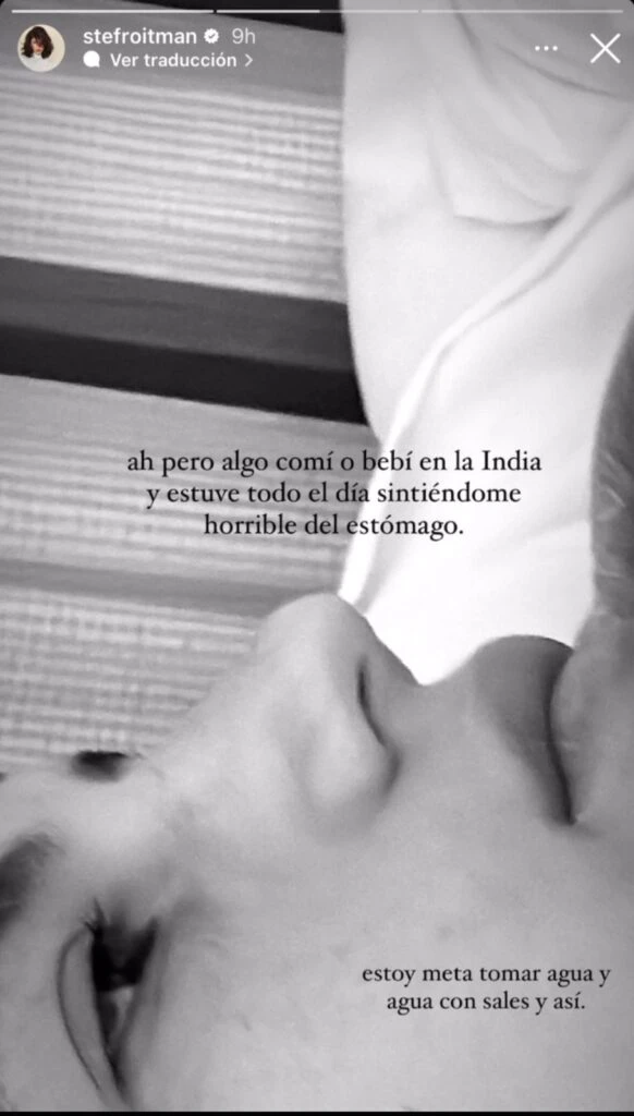 En tanto abandonaban aquel país que cuenta con una amplia diferencia horaria con Miami, Stefi irrumpió entre sus historias de instagram y sobre una foto en blanco y negro escribió: “Algo comí o bebí en la India y estuve todo el día sintiéndome horrible del estómago”.