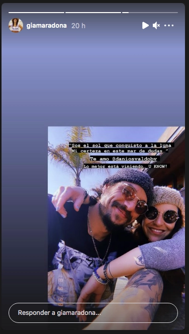 Además, Maradona agregó un texto muy emotivo, en el que le habla directamente a su novio y redactó: "Sos el sol que conquistó a la luna, mi certeza en este mar de dudas. Te amo, Daniel. Lo mejor está viniendo... ¡Vos sabés!".