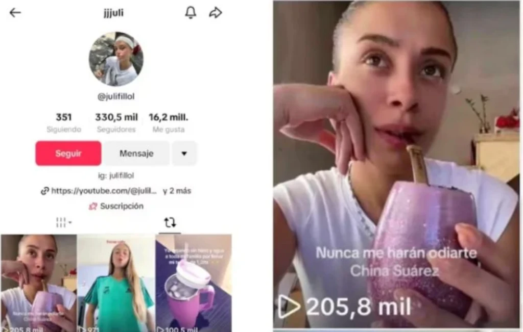 “Nunca me harán odiarte, China Suárez”, escribió Julieta Fillol mostrándose tomando mate a cámara en su clip que musicalizó con la canción “Reina Gitana” que Sangre Japonesa cantaba en Casi ángeles. Cabe recordar que, a dos meses de separarse de Valentino, en 2023, Fillol publicó una foto abrazando a Eugenia Suárez, a quien definió como “la más hermosa”.