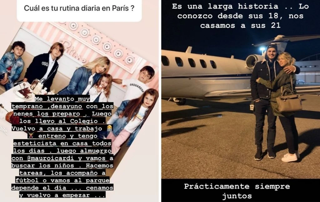 "Me levanto muy temprano con los nenes, los preparo. Luego los llevo al colegio. Vuelvo a casa y trabajo, entreno y tengo estética en casa todos los días. Luego almuerzo con Mauro y vamos a buscar a los niños. Hacemos tareas, los acompaño a fútbol o vamos al parque, depende el día. Cenamos y vuelvo a empezar", dijo acerca de la rutina familiar en la capital de Francia.