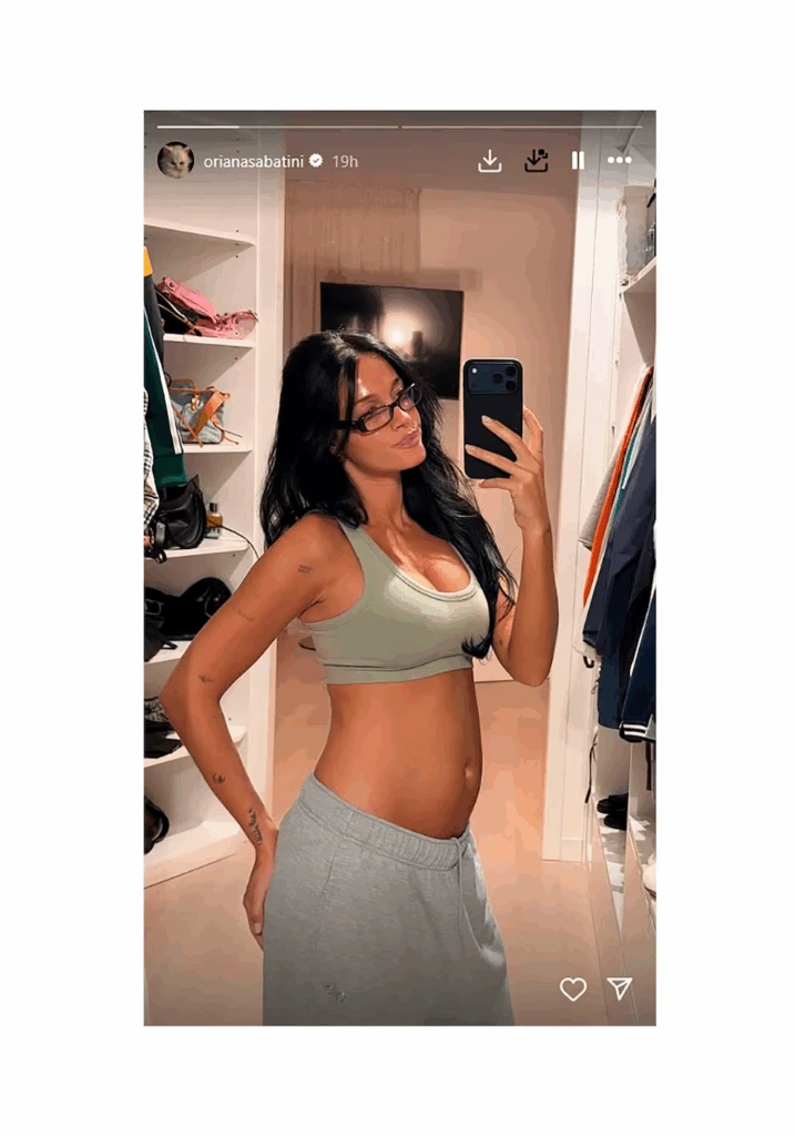 Oriana Sabatini volvió a ser el centro de atención tras mostrar por primera vez su pancita de cuatro meses. La cantante compartió una tierna foto desde el vestidor de su casa en Roma, donde vive junto a Paulo Dybala. En la imagen, se la vio sonriendo frente al espejo, con un top verde claro y un jogging gris, dejando ver los primeros signos de su embarazo.