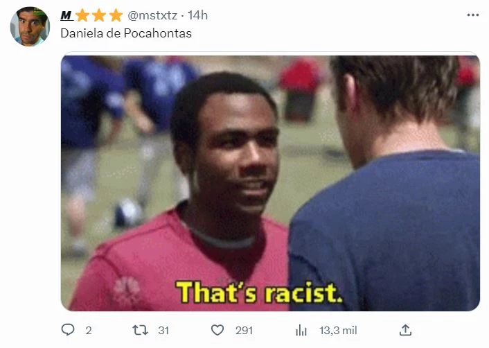 “La producción le puso Pocahontas a Daniela jaja. Hablame de bullying, sin hacer bullying”; “Daniela de Pocahontas, se desintegró el INADI”; “Daniela de Pocahontas, por Dios, la producción…”, fueron algunas de las cientas de reacciones en Twitter.