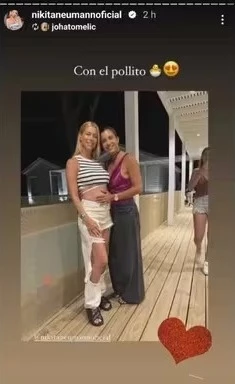 Abrazada a una de sus amigas, Nicole mostró su pancita de embarazada y allí escribió un mensaje que no pasó por alto. Con emojis y la pista que se lanzó, muchos fanáticos se animan a apostar que se trataría de un nene.