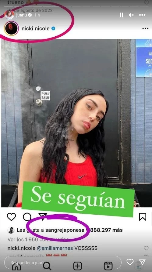 Pero fue Juariu quien hace algunas horas los mandó al frente al revelar el detalle que confirma que la China Suárez y Trueno estarían iniciando una relación. Y es que, la influencer dejó ver que los famosos se siguen en las redes sociales, pero Nicki Nicole dejó de seguir a la actriz.