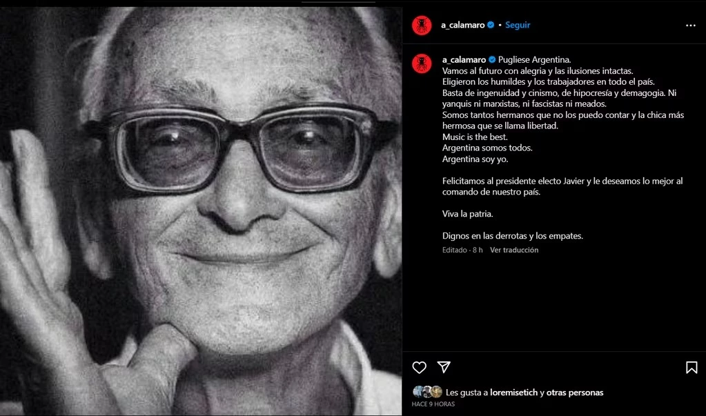EL POSTEO DE ANDRÉS CALAMARO TRAS LA VICTORIA DE JAVIER MILEI
