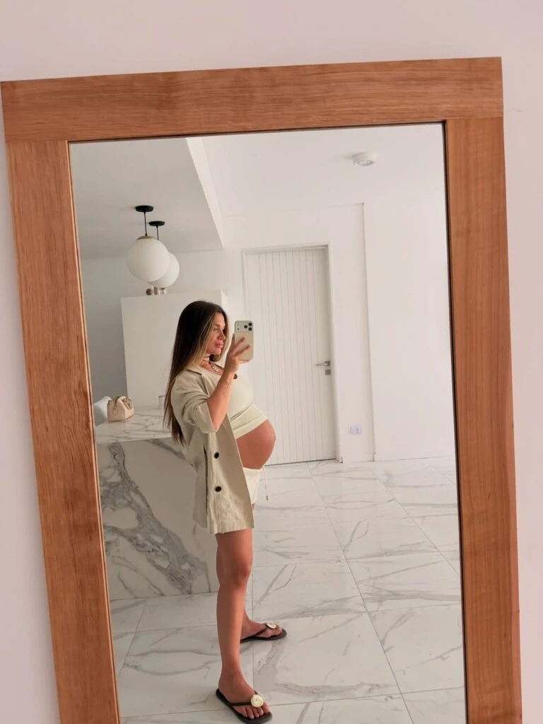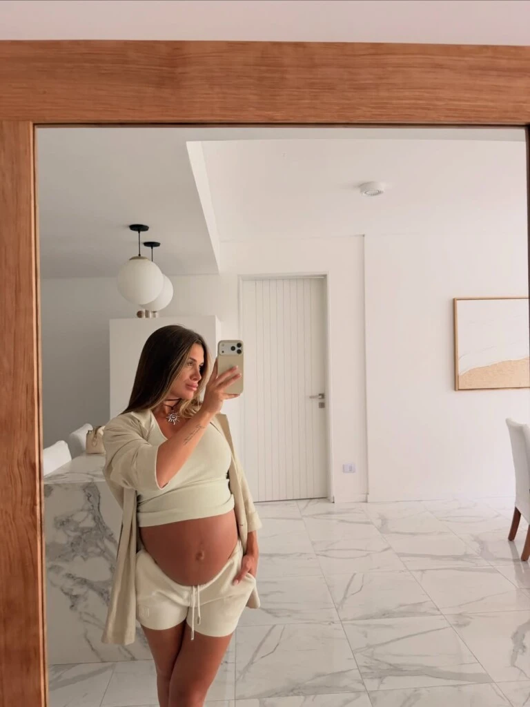 Entre esas imágenes, hubo algunas que marcaron especialmente esta etapa de Camila: una foto con un vestido que dejaba ver la panza en todo su esplendor, otra descansando al sol con una bikini blanca y un corazón dibujado con protector solar sobre el vientre. Pequeños gestos que hablaron de la expectativa que hay por la llegada de Aitana.