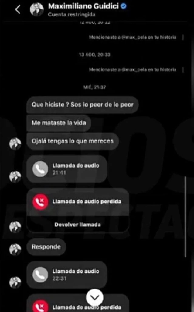 Tiempo después se supo que "Tini" no quiso saber más de Maxi porque le tiró onda a Camila Lattanzio, otra de las participantes del show, ya que la misma Camilia, le mostró los mensajes a la cordobesa. Al enterarse de esto, el ex GH amenazó a Lattanzio y le deseo lo peor: "¿Qué hiciste? Sos de lo peor. Me mataste la vida. Ojalá tengas lo que mereces".