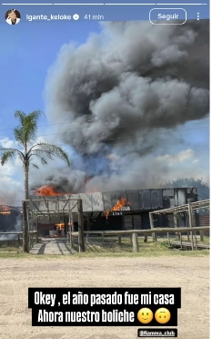 El artista disparó con todo en su publicación, porque acudió a un mensaje concreto, con el que activa una montaña de suposiciones sobre el origen del fuego. "Okey, el año pasado fue mi casa. Ahora nuestro boliche", escribió de manera tajante.