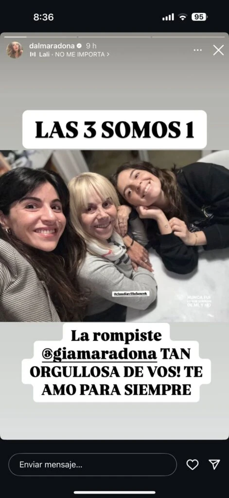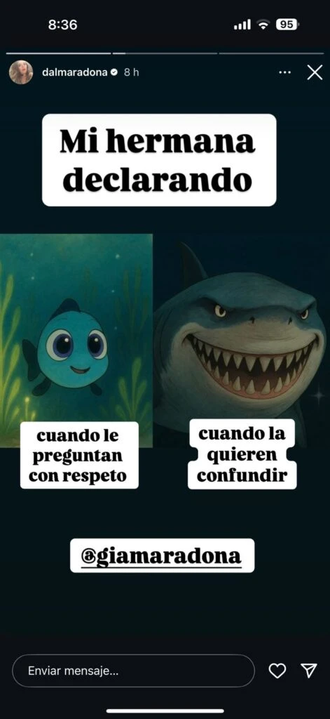 Recurriendo a sus redes sociales y encontrando en sus historias de Instagram un espacio para canalizar su dolor, ese que no cesa desde que partió el astro del fútbol, Dalma Maradona decidió acompañar a su hermana y manifestarle su admiración. Así, entre chistes y textos emotivos expuso sus sentimientos encontrados.