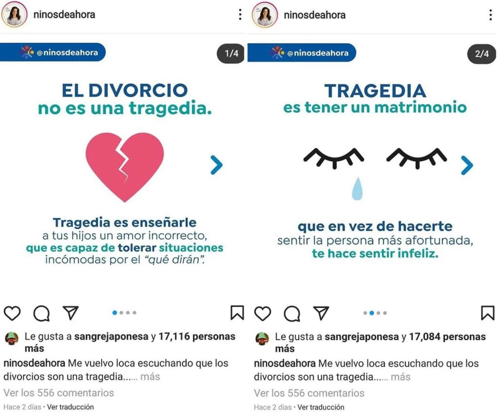 María Eugenia apretó el me gusta a un posteo que reza: “El divorcio no es una tragedia. Tragedia es enseñarles a tus hijos un amor incorrecto, que es capaz de tolerar situaciones incómodas por el ‘qué dirán’. Tragedia es tener un matrimonio que en vez de hacerte sentir la persona más afortunada te hace sentir infeliz”.