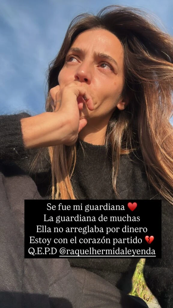 Muy conmovida por el anuncio del fallecimiento de Hermida, que tenía 63 años, Calu compartió una emotiva despedida desde sus historias de Instagram. “Se fue mi guardiana, la guardiana de muchas. Ella no arreglaba por dinero. Estoy con el corazón partido. QEPD”, expresó Rivero con una foto donde se la ve en un gesto desgarrado.