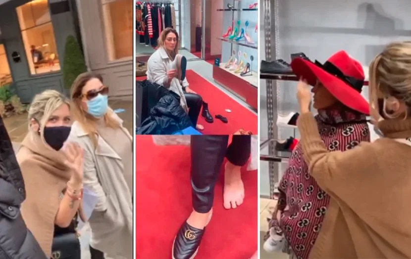 Las tres mujeres se presentaron en un local de Gucci, en donde pasaron horas probándose zapatos, tapados y sombreros hasta que vivieron una divertida situación que quedó registrada en la red social de la mediática.