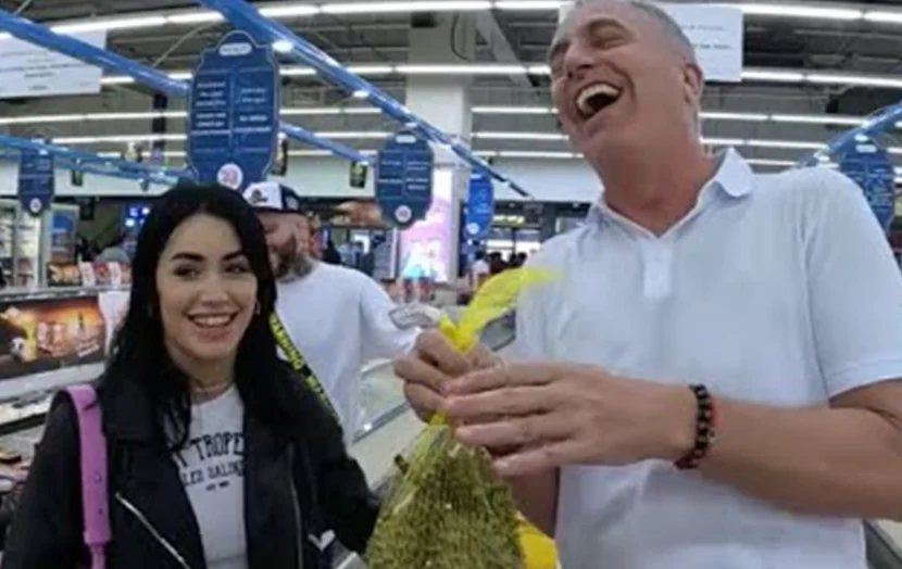 Sobre el final de la nota en el mercado local se pude observar dos changos llenos con variedades de gaseosas, frutas, tal cual pidió la artista pop y productos envasados con la que se alimentan por estos días los integrantes del programa que conviven todos juntos en una suerte de casa de Gran Hermano versión Qatarí.
