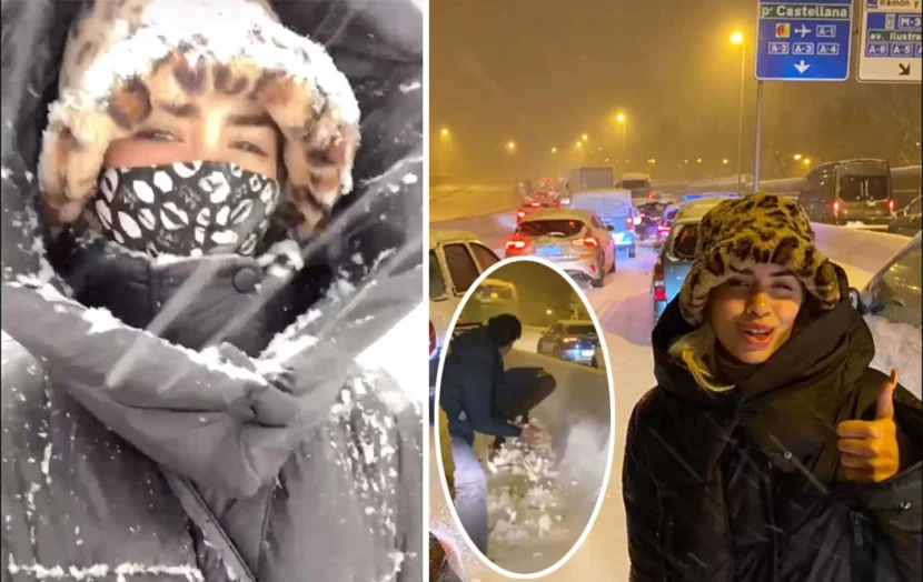 Con una España teñida de blanco y sumida en un frío que resquebraja la piel, la cantante se encontró con un enorme embotellamiento en la autopista por los pisos resbaladizos y la gran cantidad de vehículos que intentaban trasladarse.
