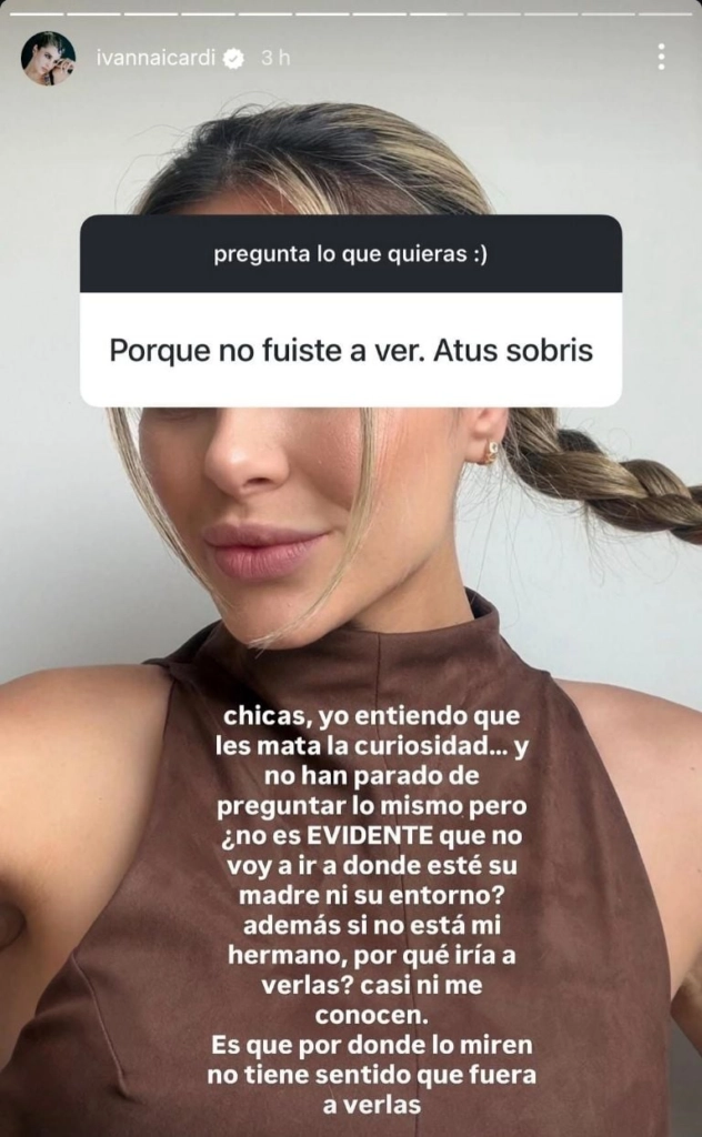 Sus palabras no hicieron más que reforzar la interna familiar que lleva años, especialmente con Wanda, con quien mantiene un enfrentamiento público desde hace tiempo. De hecho, Ivana dejó entrever que su decisión no fue impulsiva, sino coherente con su postura de no involucrarse en ese entorno.