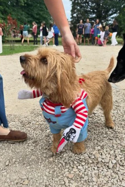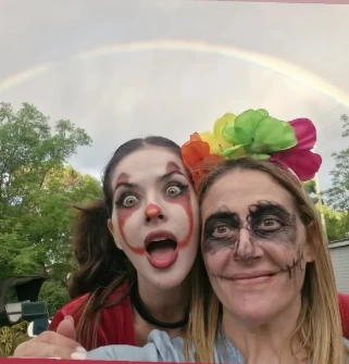 De hecho hasta su perro, a quien vistió de Chucky, llevó su propio outfit. Una de las fotos más lindas es la de la China vestida, de cara a la cámara y con un cielo nublado increíble, pero que reflejó un hermoso arcoíris.