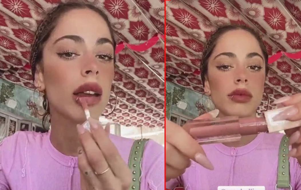 En las imágenes, dentro de un restaurante de Miami, Stoessel muestra cómo se pinta sus labios con un color intenso. Hasta ahí nada del otro mundo, de hecho se enmarca en la lógica de sus actividades económicas, que le reditúan enormemente por su imagen.