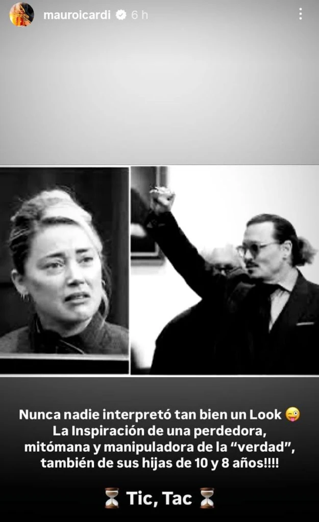 Y ese outfit que eligió llegó hasta los ojos de Icardi; el futbolista del Galatasaray eligió compartir una foto de Heard llorando en blanco y negro, acompañado de emojis de risas. De modo tal, Mauro compara a Wanda con ella.
