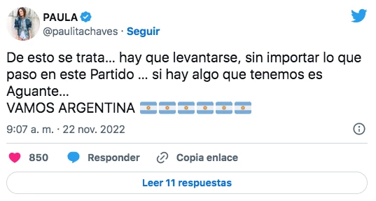 "Pero es en serio? Siempre vamos a sufrir de esta manera. LPM. Vamos carajo", publicó Mónica. "Por favor, el rival más fácil del grupo. te lo pido Argentina", compartió Luciana, enojada. "Qué cagada mi Dios", posteó Cinthia Fernández. "Listo. es fútbol. Podía pasar. A pensar en el próximo partido", expresó Yanina. "De eso se trata. hay que levantarse, sin importar lo que pase en este partido. Si hay algo que tenemos es aguante. Vamos Argentina", manifestó Paula. Y si... a pensar en el sábado, contra México.