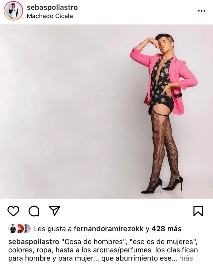 Bajo la lente y producción del estudio Machado Cicala, Seba se dejó retratar con diferentes outfit un tanto llamativos combinando medias de red y tacones con sacos y tapados. “Cosa de hombres. Eso es de mujeres. Colores, ropa, hasta a los aromas o perfumes los clasifican para hombre y para mujer... que aburrimiento ese mundo tan binario”, escribió el panelista al respecto.