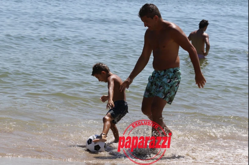 Así, la siempre estridente mediática aprovechó a pleno de las beldades del mar, para chapotear con tranquilidad en las orillas, donde se permitió incluso prodigarle algunos mimos a su marido y sobre todo jugar con una pelota de fútbol con el niño más pequeño.