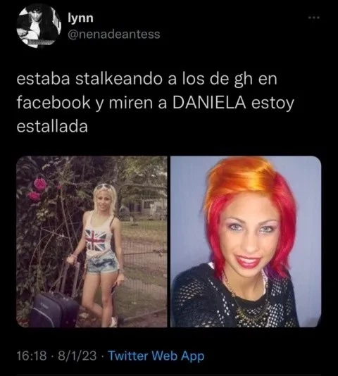 Con un público activo y que se tomó el tiempo de stalkear a la exuberante morocha en las redes sociales, se pudo descubrir que Pestañela tenía en su cuenta de Facebook una seguidilla de fotos con distintos cortes y colores de cabello que fueron de platinado a naranja… y hasta lentes de contacto celestes.