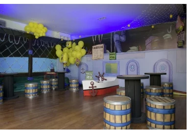 Marley se inspiró en un personaje fantástico para los niños como es Bob Esponja y todo ese universo, por eso dispuso de la ayuda de una empresa especializada que intervino todo el hogar, sobre todo el mega parque, con una decoración digna de un estudio de televisión.