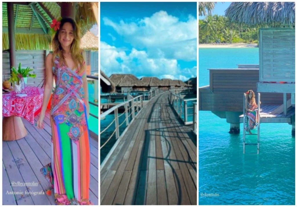 Según las postales que subió a su Insta Stories, Vero Lozano eligió hospedarse en un lujoso complejo de cabañas que está sobre el mar que se comunica a través de pasarelas.