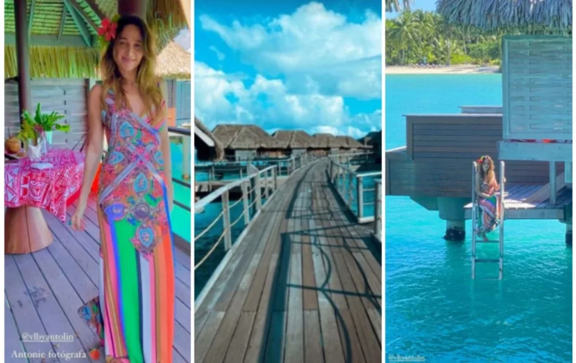 Según las postales que subió a su Insta Stories, Vero Lozano eligió hospedarse en un lujoso complejo de cabañas que está sobre el mar que se comunica a través de pasarelas.