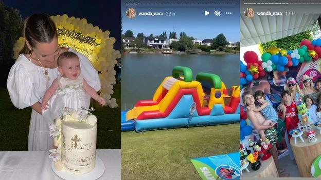 Así que la blonda ya se zambulló de lleno en esta increíble propiedad, que se caracteriza por una piscina gigante, con vertientes que la transforman en la gran atracción del hogar. Y en ese espacio, Nara decidió realizarle un festejo de cumpleaños a uno de sus hijos, con una celebración llena de canjes de toda índole, desde una barra de alcohol, hasta la decoración infantil, la comida para los invitados y un inflable gigante.