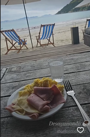 Entre las imágenes compartidas por la diva, se la ve disfrutando los distintos atractivos que hay para hacer en la playa que se encuentra, compartió su desayuno americano y los paisajes que la rodean que no pierden su encanto a pesar del clima al cual Nazarena decidió hacerle frente bailando en el mar y la lluvia.
