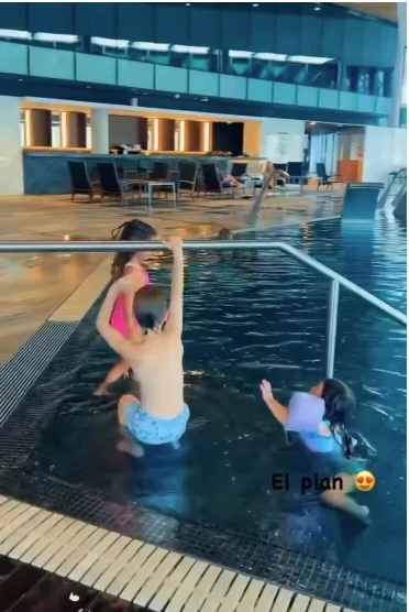 En las fotos se puede percibir las beldades del alojamiento que eligieron, que los cobija en estas vacaciones a todo lujo, porque la infraestructura del lugar les permite nadar en dos piletas internas, climatizadas a la temperatura ideal, así como chapotear en un jacuzzi gigante.