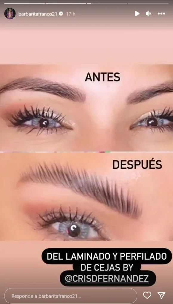 Además agradeció a Cris Fernández quien ya supo peinarla para cuando Barby se encontraba en el programa de Marcelo Tinelli durante el año 2021. Las imagenes fueron acompañadas por un texto donde afirmó: "Antes, Después. Del laminado y perfilado de cejas by @CrisDFernandez".