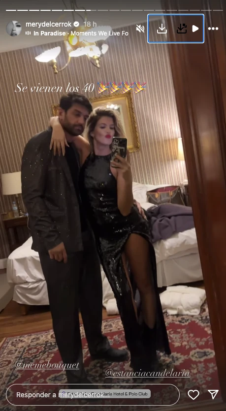 En una historia de Instagram, Mery del Cerro mostró los looks y lanzó: "Así va a arrancar Meme su cumpleaños de 40. Él se siente medio mago, pero a mí me gusta ese outfit, eh. Se lo traje de sorpresa para que arranque brillando y bien arriba".