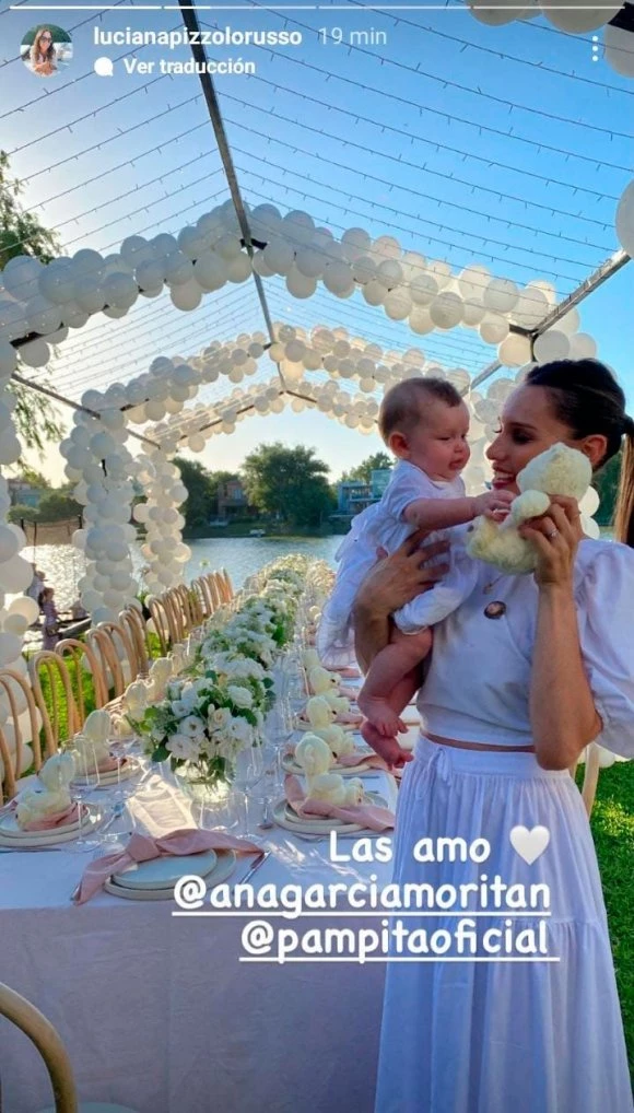 A través de Instagram Stories, Luciana Pizzolorusso, una de las madrinas de Anita, dejó asomar la ambientación al aire libre del bautismo.