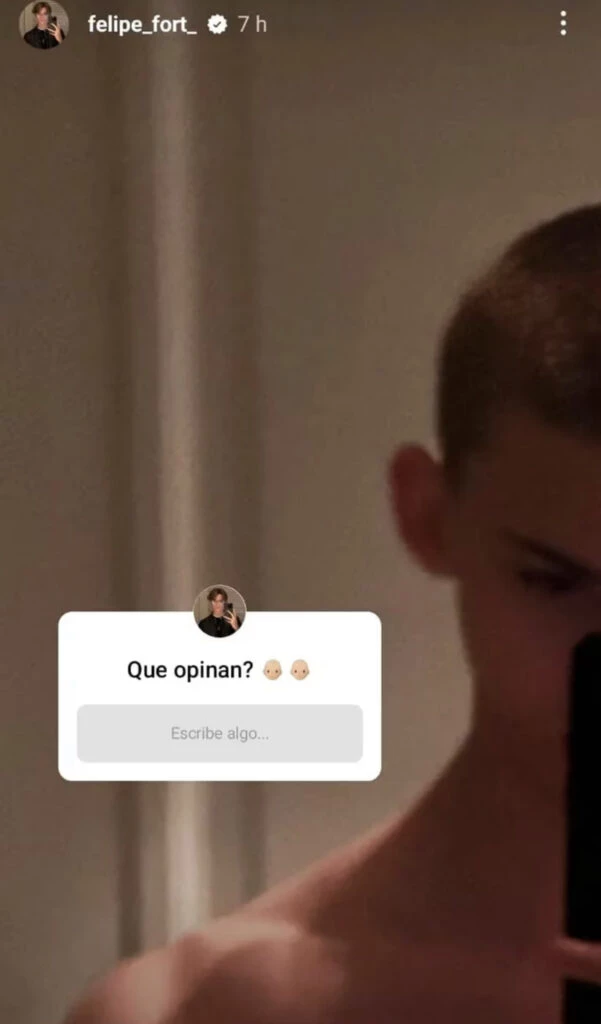 Lo hizo para consultarle a sus seguidores si estaban a gusto o no con su nuevo look, teniendo en cuenta que fue un cambio súper radical. El adolescente, se espidió de su larga y dorada cabellera. Se rapó y compartió el resultado en su red social. “¿Qué opinan?”, lanzó a través de sus historias.