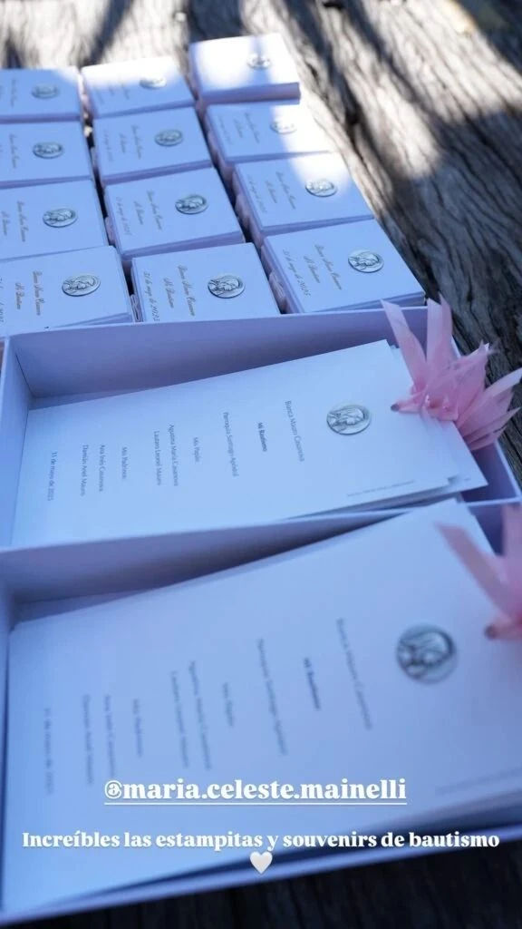 El evento no fue solo una fiesta de cumpleaños, sino también un bautismo religioso cargado de simbolismo. A los invitados se les entregó una medalla de la Virgen como recuerdo, un detalle lleno de fe y significado para la familia. La ceremonia fue íntima y conmovedora, acompañada de un clima familiar muy emotivo.