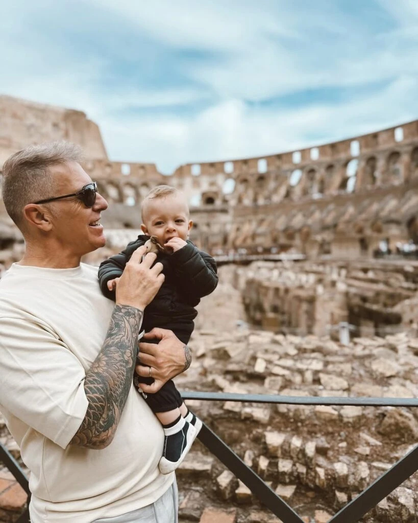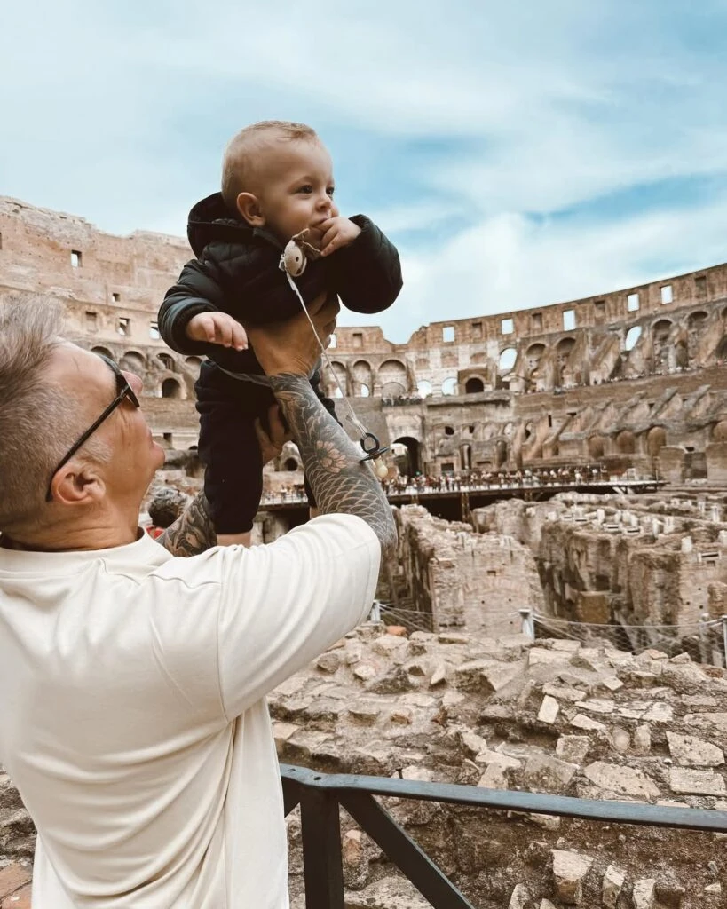 Fantino compartió uno de los momentos más tiernos del viaje: su hijo dando pasos decididos en el Coliseo. “Mi pequeño guerrerito”, escribió, emocionado, en un video donde se lo ve hipnotizado por la magnitud del monumento. Papá orgulloso, comparó a su hijo con un mini gladiador, iniciando su propio camino entre piedras milenarias y turistas.