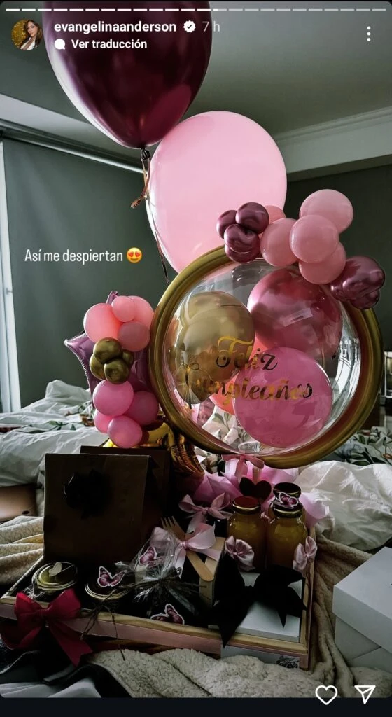 Una de las sorpresas es la que ya se sabe, la de su esposo Martín Demichelis. El director técnico de River le llevó un desayuno especial para su cumpleaños. Evangelina agradeció el gesto y subió todo a las redes sociales. "Así me despiertan", compartió.