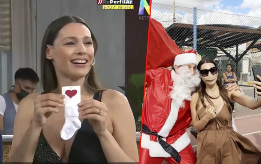 El viernes en su programa Pampita Online, la bellísima morocha experimentó un momento muy peculiar. Su compañero Gabriel Olivieri le llevó un regalo muy especial, unos escarpines blancos con un corazón rojo.