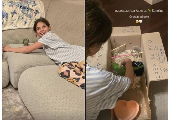 Evidentemente, el progenitor del futbolista detectó que podía causarles una linda sorpresa a sus nietas y decidió obsequiarles un loro. Así, las gurruminas salieron al ruedo de las redes sociales para exhibirlo y presentarlo para todo el mundo.