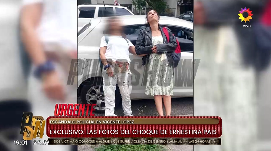 En las imágenes que mostraron en Puro Show, se ve claramente a la conductora apoyada contra un Honda City blanco, con la mirada elevada al cielo, tras la llegada de la Policía al lugar. Cabe destacar que esta no es la primera vez que Pais sufre un percance de este tipo con el auto. “Es la cuarta vez en siete años que choca y se niega a realizarse el test”, contó Matías Vázquez.