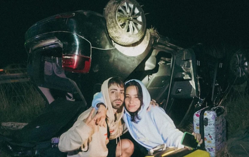 Según explicó, este fin de semana se dirigía a Pinamar junto a su amigo, Agustín Franzoni, cuando de repente el vehículo "se salió de control" y volcó en plena carretera. Afortunadamente, ambos salieron ilesos y aún no pueden creer lo que les tocó vivir.